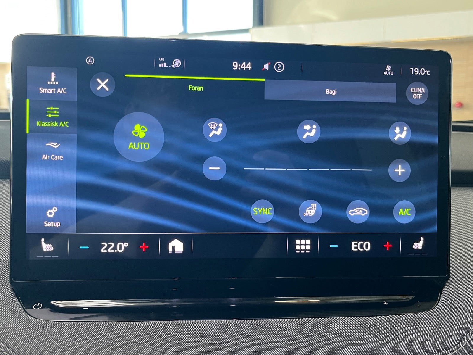 digitalt cockpit, dellæderindtræk, multifunktionsrat, el indst. førersæde m. memory, læderrat, ambiente belysning, 19" alufælge, el-klapbare sidespejle m/varme, matrix led forlygter, led baglygter, led kørelys, tågelygter, dynamisk blinklys i bag, mørktonede ruder i bag, svingbart træk (elektrisk), svingbart træk (manuel), el-soltag, dynamisk blinklys, aircondition, 3 zone klima, 4x el-ruder, elektrisk parkeringsbremse, automatisk forvarmning af batteri, manuel forvarmning af batteri, app integration, el betjent bagklap, fod betjent bagklap, automatisk start/stop, fuldaut. klima, varme i rat, varmepumpe, adaptiv fartpilot, adaptiv fartpilot med kø-assistent, aut. nedbl. bakspejl, sædevarme, navigation, android auto, apple carplay, usb-c tilslutning, trådløs mobilopladning, isofix, fjernlysassistent, skiltegenkendelse, parkeringssensor (for), parkeringssensor (bag), bakkamera, regnsensor, intelligent hastighedsassistent, træthedsregistrering, automatisk lys, blindvinkelsassistent, auto hold, automatisk nødbremsesystem, vognbaneassistent, stemmebetjening, automatisk nødassistent